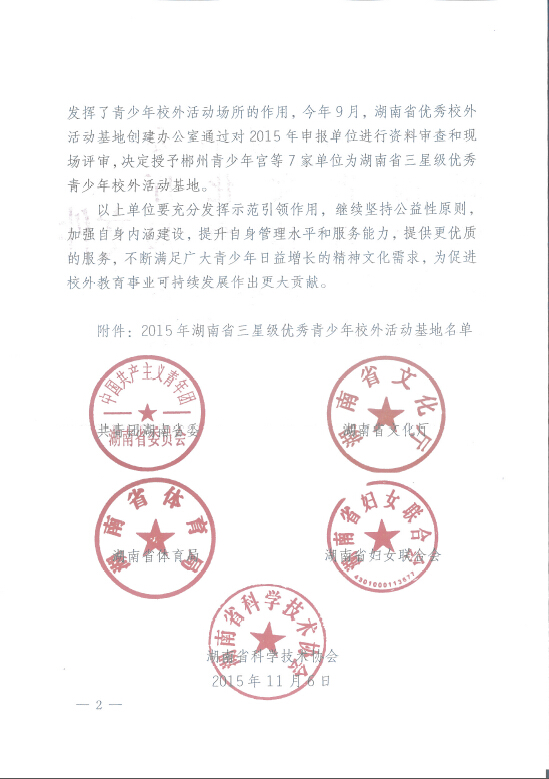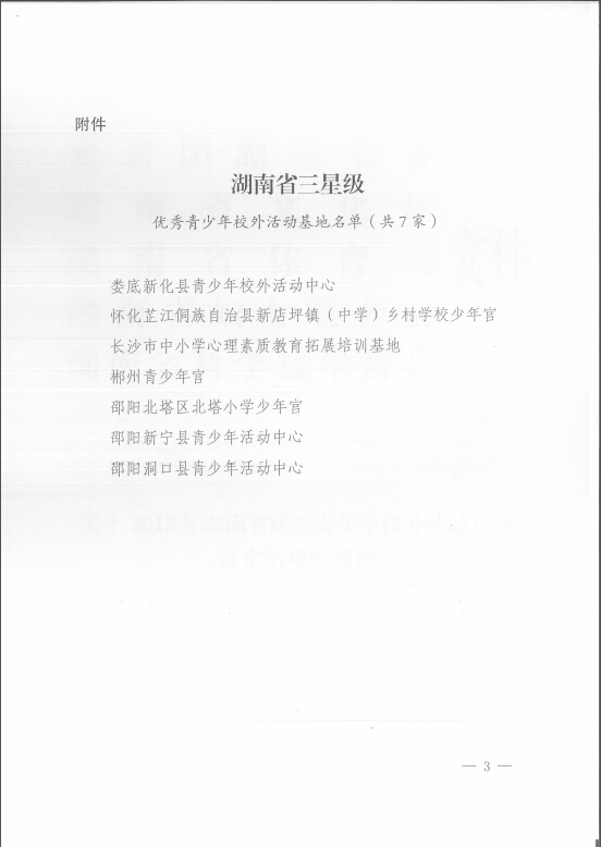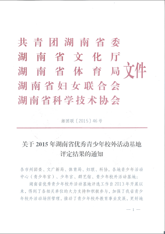 关于2015年湖南省优秀青少年校外活动基地评定结果的通知