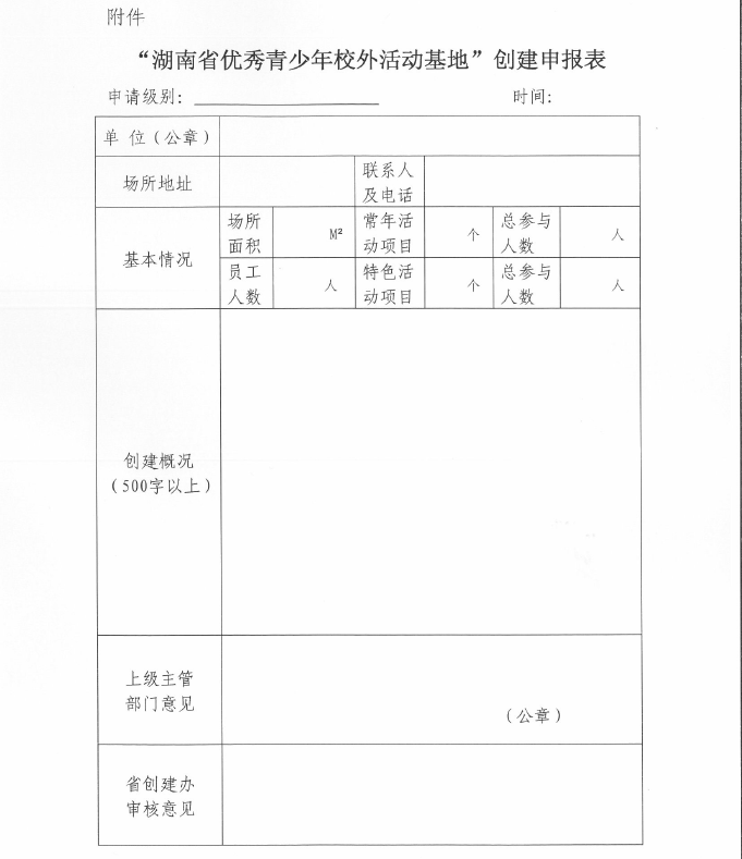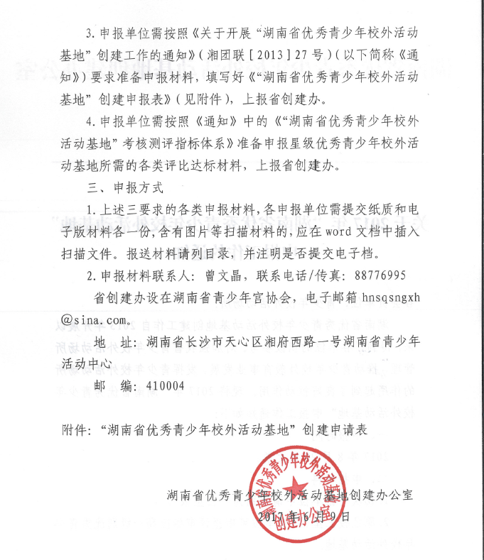 关于2017年“湖南省优秀青少年校外活动基地”申报工作的通知